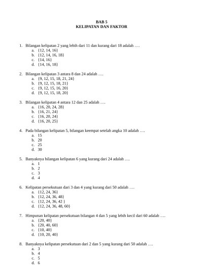 16) faktor persekutuan dari 14 dan 24 adalah.